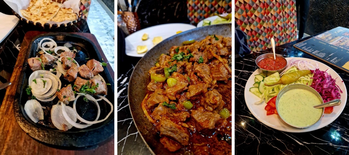 Really pleasant meal on a Monday evening. With some friends we all ordered the lamb kebabs with an option of any 2 from 3 of rice, chips or nan bread. (£8.99). The kebabs arrived on a hot plate on bed of chopped onions. Salad was an extra £1.50 which was possibly the only gripe. A lovely lady called Faza was very patient and attentive and added to the pleasant surroundings.
