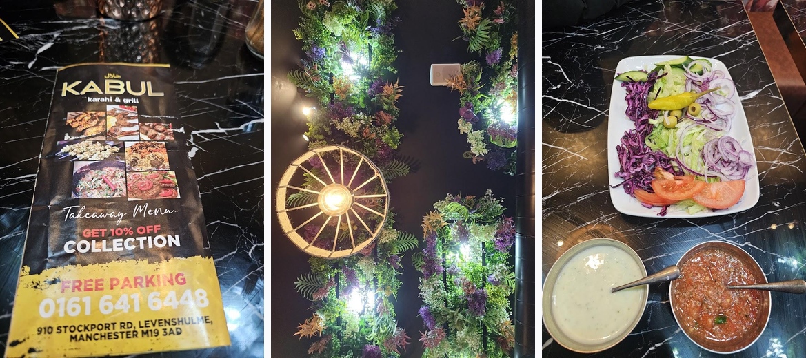 We were visiting nearby and didn't want to go to My Nawaab, so looked for something in Levenshulme and came across this lovely small eatery. Parking was no problem as there is a supermarket nearby with free parking. I went with my family including young children, and they had highchairs available. The smell was lovely inside, as well as the decor. We ordered a platter and the chappal kebabs. Everything was fresh, lovely, and not too pricey either. The kabuli rice was amazing, and is probably the best I've had in the UK. The chappal kebabs were decent, and the meats as part of the platter were all excellent. Finished with tea and sugared almonds. Will definitely go again.